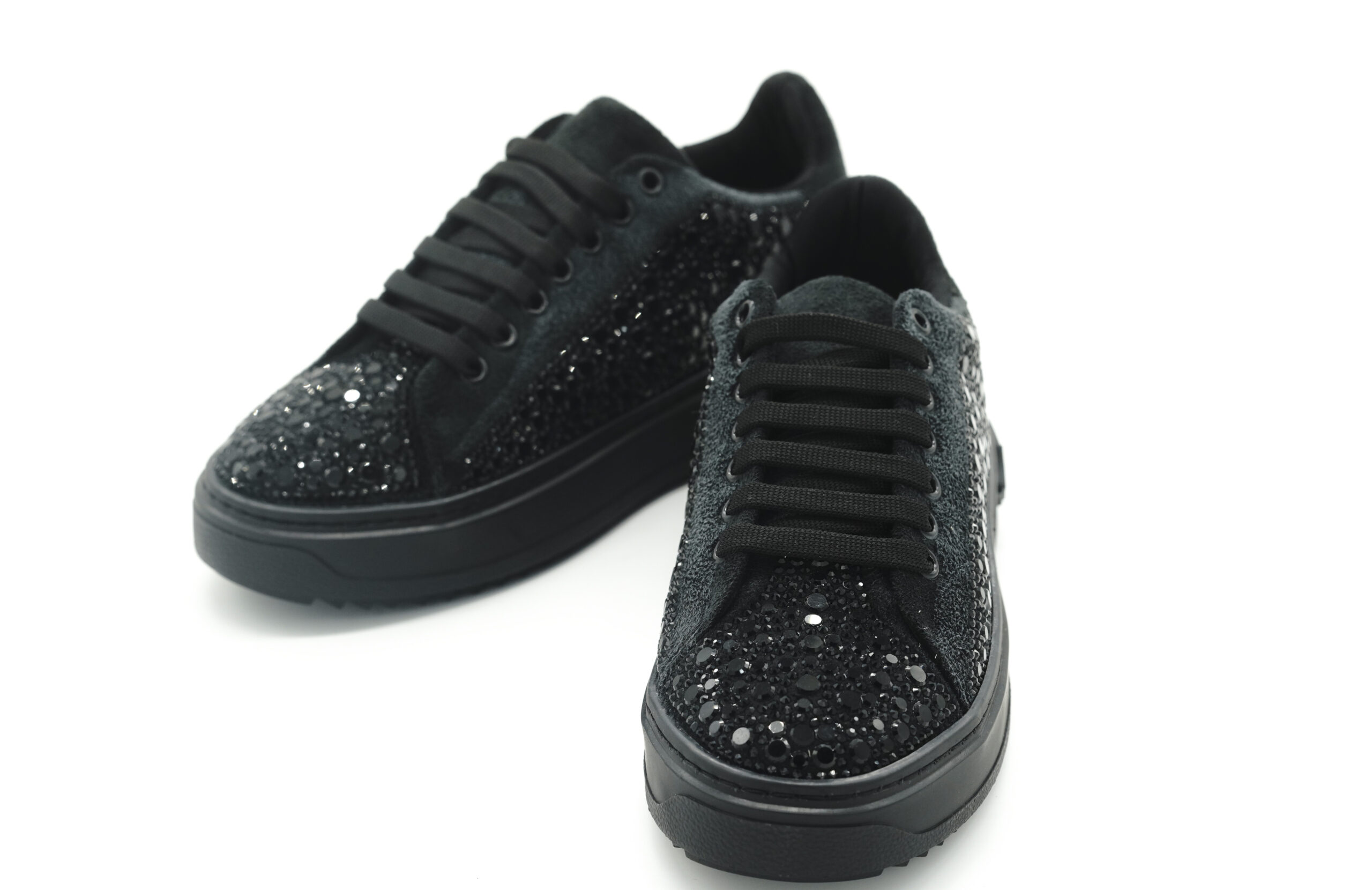 Luvesta siyah taşlı sneaker, zarif taş detayları ve modern süet dokusuyla günlük şıklığa sofistike bir dokunuş katar.